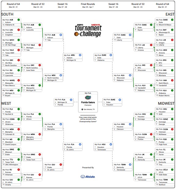 For this challenge, we asked 6 different AI tools who would win each of the games in the March Madness tournament.